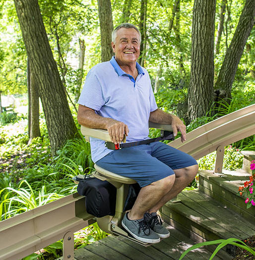 SL300 with folding flip-rail. Our Outdoor Stair Lift Chairs